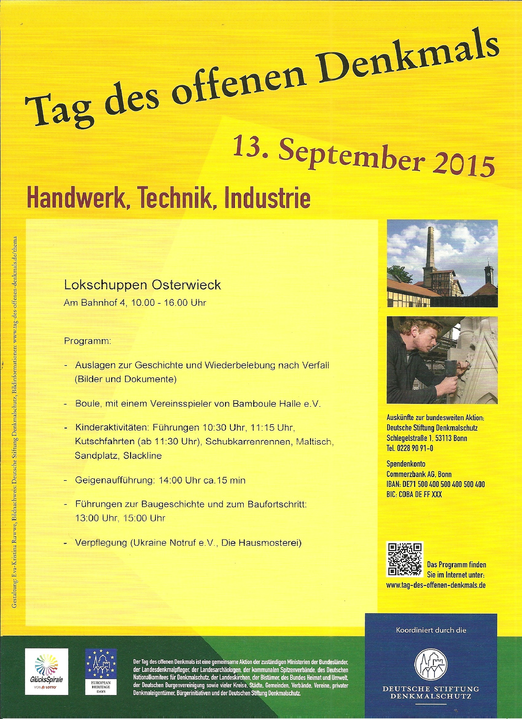 Wir machen mit. Zum Tag des offenen Denkmals laden wir sehr herzlich ein.